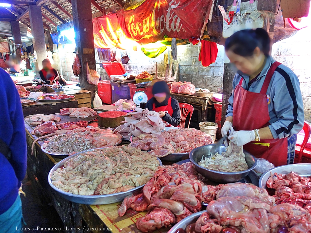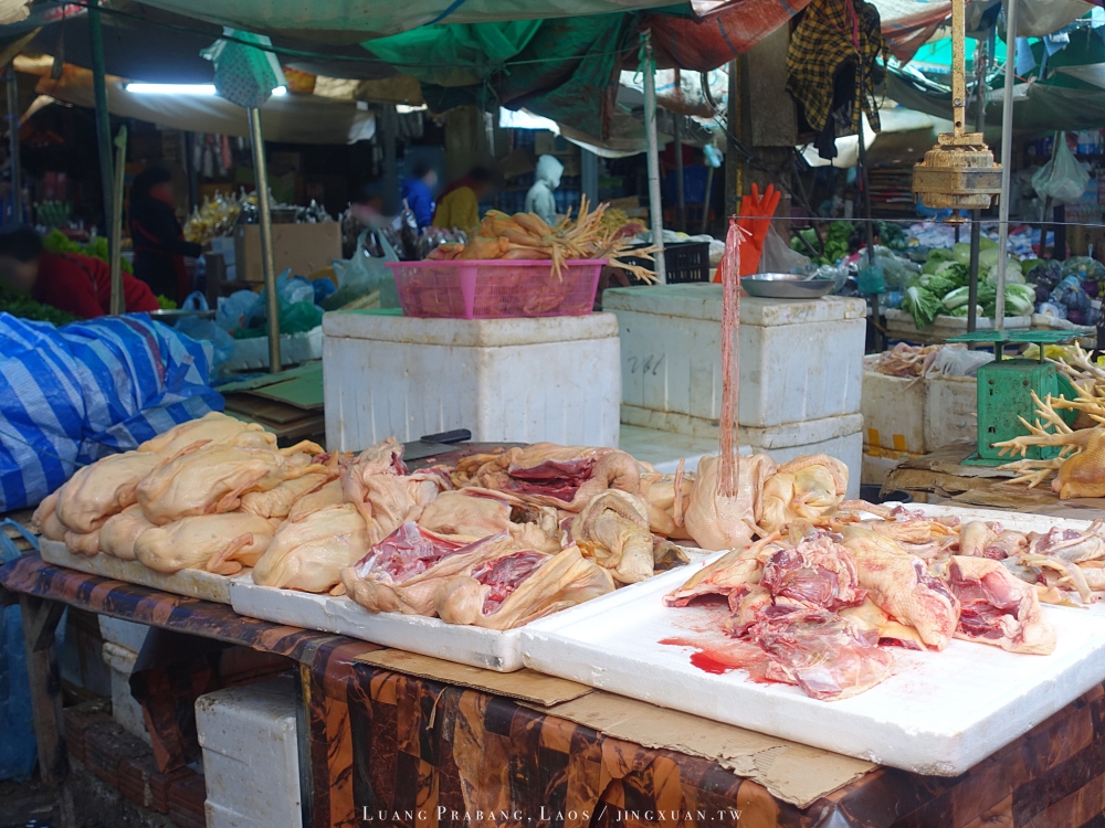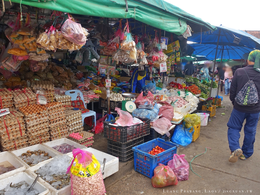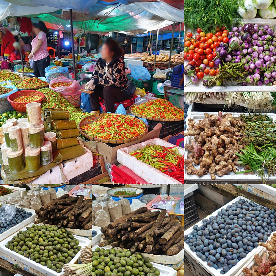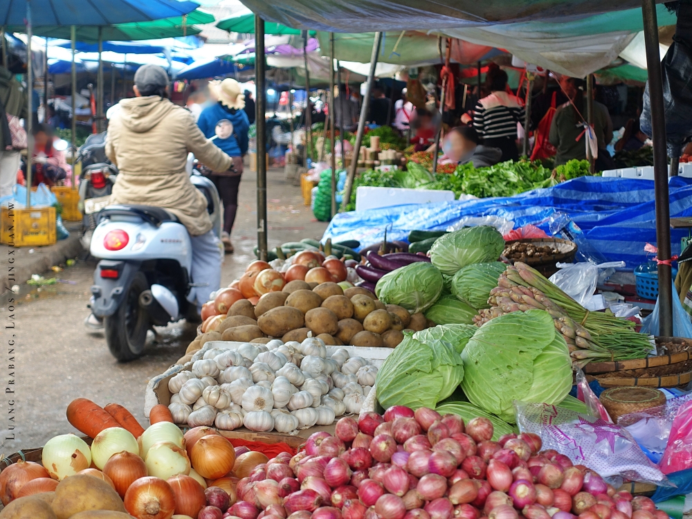 這次選擇參加早上的課程,先步行到龍坡邦 Luang Prabang 之 Tamarind Restaurant 集合,隨後跟著老師一起搭乘嘟嘟車到在地人市集「Phosy Market 豐思市集」進行市集導覽。這是寮國北部最大的市集,每日0700-1700營業,有數百個攤位,其中2/3屬有頂室內市集,販售蔬菜、水果、米、肉類、漁獲、服飾及生活百貨等,琳瑯滿目。