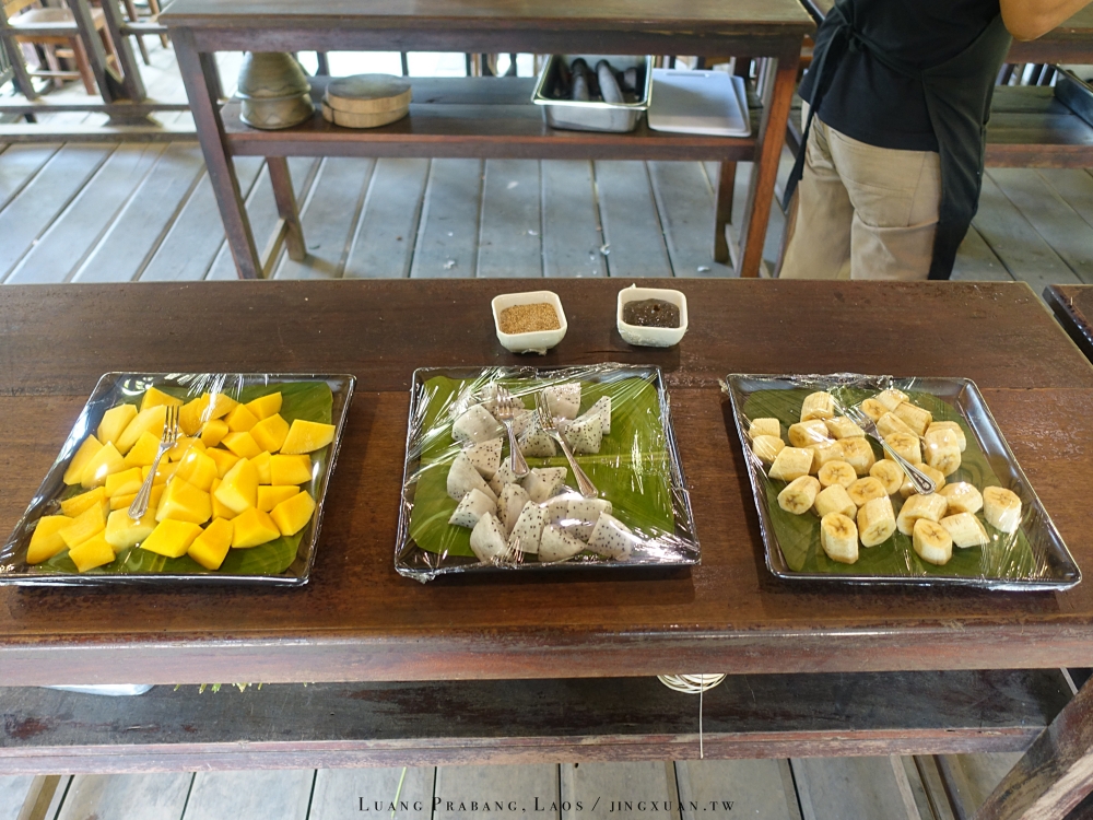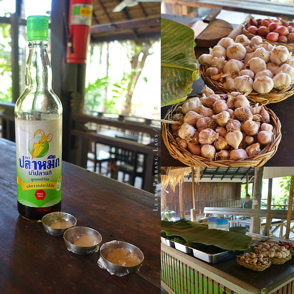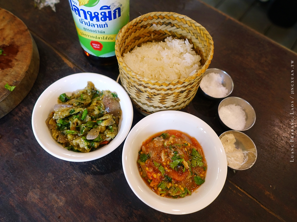 還沒到寮國之前,對這個國家資訊攝取量少之又少,除實地造訪吸收外,臨時參加了一項含金量特別高的龍坡邦烹飪教室「Tamarind Cooking School」,由主辦單位的 Tamarind 主廚帶著我們去參觀當地最大且是在地人逛的市集「Phosy Market」,之後再到郊外田野小屋一步步跟著老師學習製作寮國特色菜:糯米飯、番茄莎莎醬、茄子醬、香蕉葉蒸魚、香茅鑲肉、香草拌碎肉沙拉、椰香紫糯米飯,參加的不僅僅是一個料理課程,而是漸層式的了解寮國飲食文化,整理感覺滿足又具有意義。