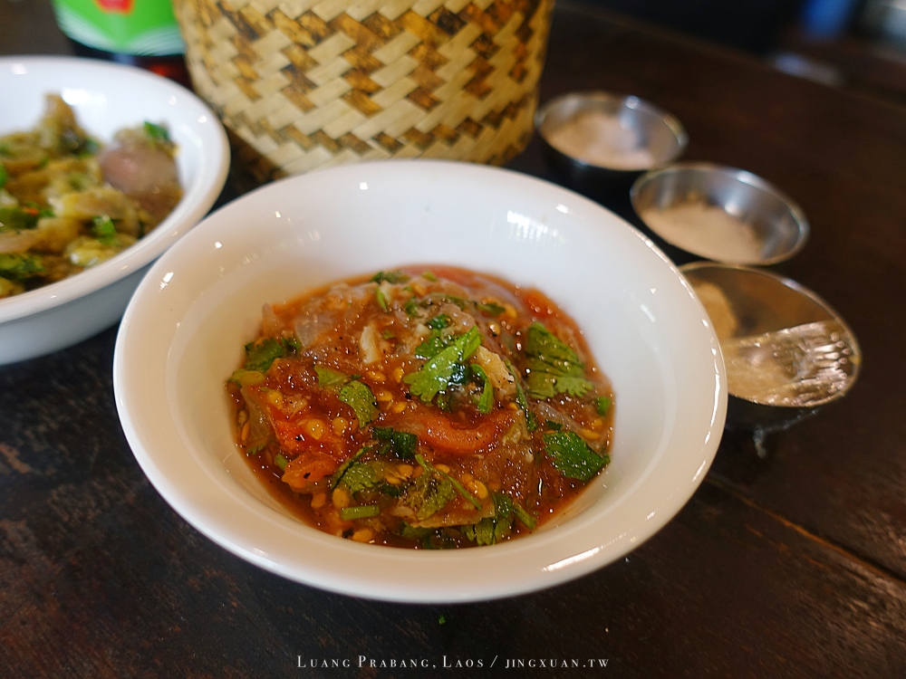 Jeow Mak Len/Lao Tomato Salsa 寮式番茄莎莎醬,配合寮國人共享餐食的飲食習慣,料理中避免出現過多湯水。像泰國常見的酸辣海鮮冬蔭功湯 Tom Yum Goong 便不適合搭配主食糯米一同享用。於是,寮國便發展出各式風味濃郁、汁水較少的蘸醬 Jeow/Jaew。這些蘸醬多帶酸、辣與鹹鮮風味,既可搭配糯米團蘸食,也能作為配菜增添層次。